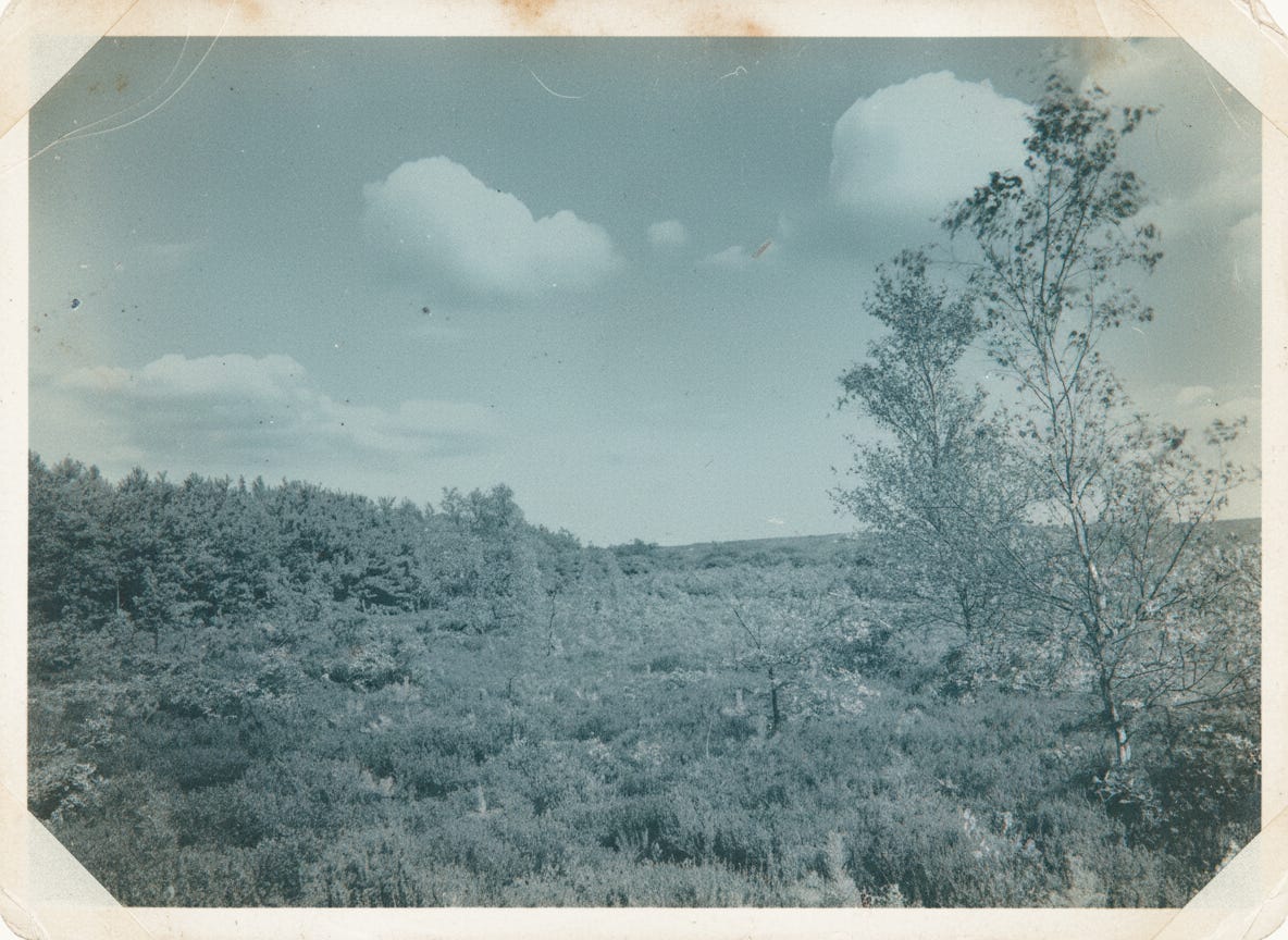 Our improvised trample path next to the river and through the soon-to-become forest leads to a huge clearing: an open meadow, surrounded by the quiet view of the valley. The sky is covered with a whimsical wall of clouds. Magenta. Far in the back: a tight, horizontal opening, stretching along the horizon. The setting sun - warm orange, yellow hue — glowing through that cloudy window as we return home.